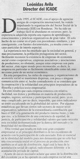 Publicado en el Suplemento de El Heraldo, Diez años impulsando la organización del SSE de Honduras. ICADE, 08/03/2002.